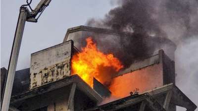 चार मंजिला इमारत बनी आग का गोला, दमकल कर्मियों ने कई घंटों तक किया संघर्ष