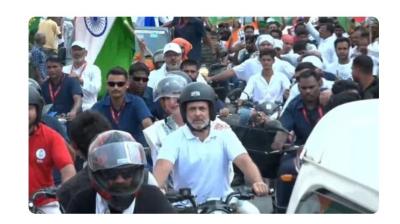 यात्रा के दौरान राहुल ने थामी बाइक की कमान, प्रियंका बनीं साथी