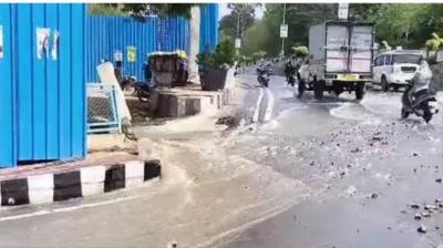 भोपाल में लोक भवन के सामने फिर लापरवाही उजागर, पाइपलाइन फटने से धंसी सड़क