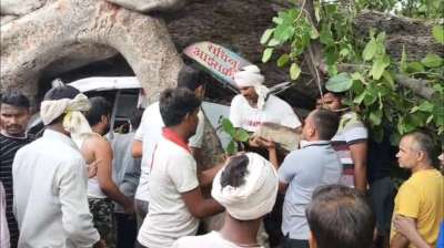 रीवा में पेड़ गिरने से मचा हड़कंप, 10 लोग चपेट में, दृश्य देख कांप उठे लोग