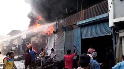 इंदौर के ट्रांसपोर्ट नगर में टायर की दुकान में भीषण आग, इलाके में धुएं का गुबार