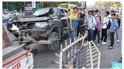 बीआरटीएस की बस रैलिंग से टकराई स्कार्पियो, क्रेन से निकालना पड़ी गाड़ी, एयरबैग खुलने से युवक-युवती बचे