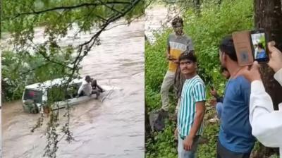 सरकारी गाड़ी को बहा ले गया पानी का सैलाब—खजूर के पेड़ ने रोक ली मौत, मेडिकल ऑफिसर्स ने कूदकर निकाली जान