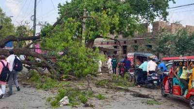 इंदौर में आंधी बारिश, सैकड़ों पेड़ गिरे, बिजली के खंबे भी टूटे