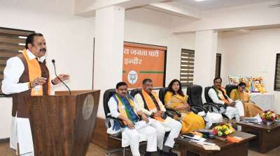 संगठन पर्व को लेकर गुरुवार को इंदौर भाजपा कार्यालय में संभाग की बैठक