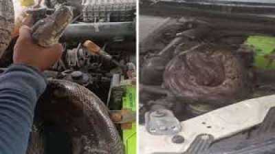 कार का बोनट खोलते ही दिखा अजगर......उड़ गए होश