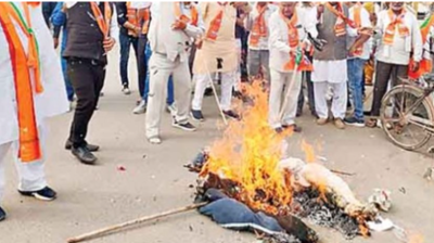 राहुल गांधी के विवादित बयान पर भाजपा का हंगामा, माफी की मांग के साथ पुतला दहन