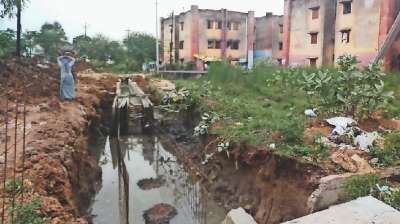 नाले की जमीन पर बने थे 3 अवैध घर अब चला हथौड़ा