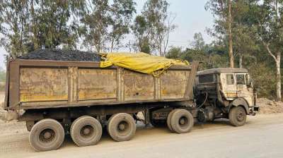 चलते ट्रक में लगी आग, दमकल विभाग ने कड़ी मशक्कत के बाद पाया काबू