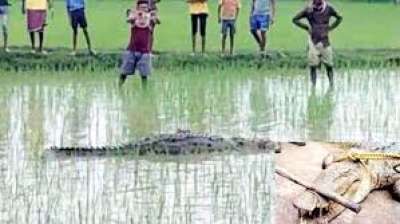 गाँव से लगे खेत में देखा गया विशालकाय मगरमच्छ मचा हड़कप