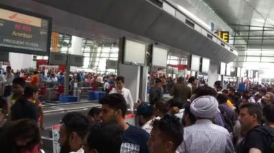 इंदिरा गांधी अंतरराष्ट्रीय एयरपोर्ट पर यात्रियों की भीड़ और तनाव