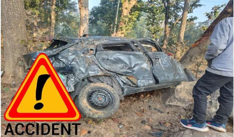 सड़क हादसा: तेज रफ्तार कार अनियंत्रित होकर 25 फीट नीचे खाई गिरी, दो की मौत