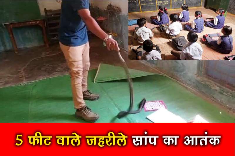 बैतूल: मध्य प्रदेश के बैतूल जिले में एक जहरीले सांप ने हड़कंप मचा दिया। सांप स्कूल के एक कमरे में चटाई के नीचे छिपा हुआ था। बताया जा रहा है कि सांप 5 फीट लंबा था. आपको बता दें कि मामला बैतूल जिले के भोगीतेड़ा प्राथमिक स्कूल से सामने आया है। यह घटना उस वक्त हुई जब एक छात्र ने अपना बैग खोला। जैसे ही उसने बैग की चेन खोली तो उसने देखा कि चटाई के नीचे कुछ हलचल हो रही है। इसी बीच छात्र की नजर एक बड़े खतरनाक सांप पर पड़ी। वो सांप वहां बिल्कुल चुपचाप छिपा हुआ था। फिर क्या था छात्र डर गए और जोर-जोर से चिल्लाने लगे। इसके बाद स्कूल की क्लास में अफरा-तफरी मच गई।