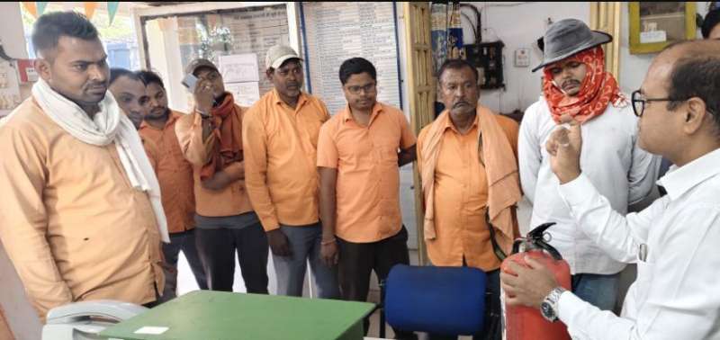 कलमीटार रेलवे स्टेशन में रेलकर्मियों को दिया गया अग्निशमन यंत्र के प्रयोग का प्रशिक्षण