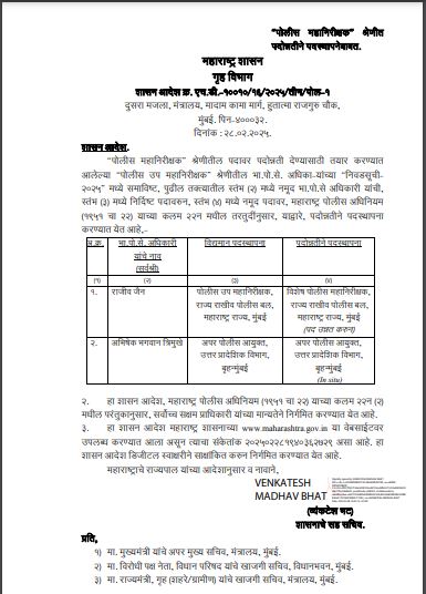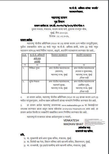भोपाल।  मध्य प्रदेश में पुलिस विभाग में IPS अधिकारियों की पदोन्नति की गई है।