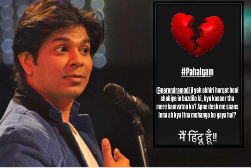 आपको बता दें, सिंगर ने अपने इंस्टाग्राम हैंडल पर एक पोस्ट शेयर किया। इसमें एक बड़ा सा दिल टूटता हुआ देखा जा सकता है और बैकग्राउंड में उनका गाना चल रहा है -‘सुन रहा है ना तू, रो रहा हूं मैं। इस पोस्ट में अंकित तिवारी ने लिखा, ‘#पहलगाम, नरेंद्र मोदी जी ये आखिरी हरकत होनी चाहिए इन बुजदिलों की, क्या कसूर था मेरे हमवतनों का? अपने देश में सांस लेना अब क्या इतना महंगा हो गया है? मैं हिन्दू हूं !!’