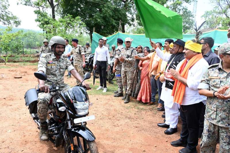 मुख्यमंत्री के साथ उपमुख्यमंत्री विजय शर्मा और वन मंत्री केदार कश्यप, मुख्यमंत्री के प्रमुख सचिव सुबोध कुमार सिंह भी बासिंग पहुंचे। मुख्यमंत्री ने जवानों का उत्साहवर्धन किया और तिलक लगाकर उनका अभिवादन किया। उन्होंने जवानों से कहा कि बस्तर में अमन-चैन लाने में आपकी महत्वपूर्ण भूमिका है। मुख्यमंत्री ने 50 मोटर साइकिलों पर सवार सुरक्षा बल के जवानों को हरी झंडी दिखाकर गश्त के लिए रवाना किया। जवानों का उत्साहवर्धन करते हुए मुख्यमंत्री साय ने कहा कि जिस तरह सुरक्षा बलों ने उच्च स्तरीय रणनीति बनाकर ऑपरेशन को अंजाम दिया और सफलता हासिल की, वह सराहनीय है। बल के इस अदम्य साहस और वीरता को सलाम। मुख्यमंत्री ने आगे कहा कि अब वह दिन दूर नहीं जब बस्तर के माथे से माओवाद का कलंक पूरी तरह मिट जाएगा।