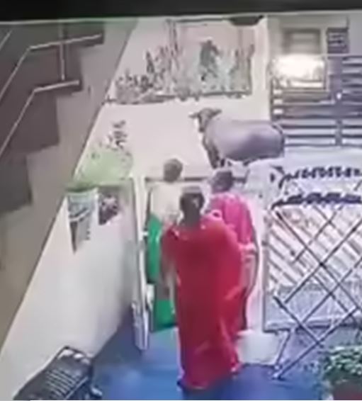 घर में घुसे झगड़ालू सांड़, गेट पर खड़ी महिलाओं के संग टला बड़ा हादसा