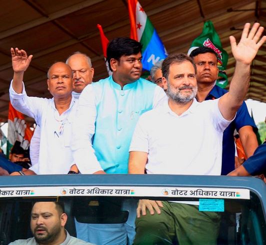 भागलपुर। लोकसभा में नेता प्रतिपक्ष एवं कांग्रेस सांसद राहुल गांधी के नेतृत्व में चल रही मतदाता अधिकार यात्रा ने बिहार में विशाल जनसैलाब का रूप ले लिया है। यात्रा के छठे दिन भागलपुर के नाथनगर में लाखों की भीड़ उमड़ी और लोगों ने ज़ोरदार नारे लगाए–वोट चोर, गद्दी छोड़। भीड़ ने यह नारे मध्यप्रदेश, हरियाणा, महाराष्ट्र और कर्नाटक में हुए कथित वोटर फ्रॉड के संदर्भ में लगाए। राहुल गांधी ने सभा को संबोधित करते हुए आरोप लगाया कि चुनाव आयोग, प्रधानमंत्री नरेंद्र मोदी और भारतीय जनता पार्टी मिलकर लोकतंत्र और संविधान को नष्ट करने तथा जनता का वोट चुराने की साजिश कर रहे हैं।