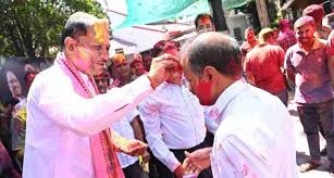 रंगों में रंगा मुख्यमंत्री निवास, Vishnu Deo Sai ने अधिकारियों संग खेली होली