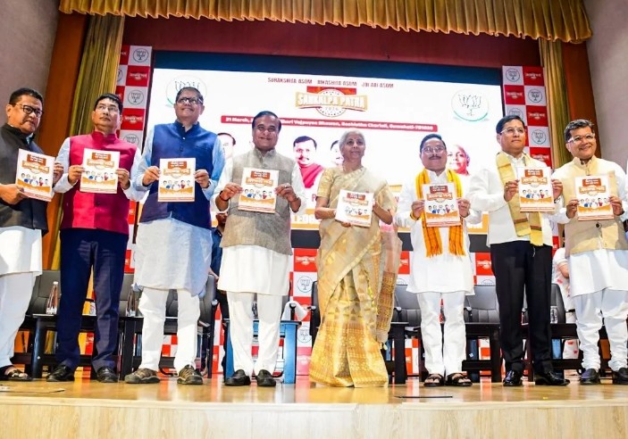 Assam BJP Manifesto: असम में विधानसभा चुनाव को लेकर बीजेपी ने मंगलवार को संकल्प पत्र जारी किया है। इस मौके पर सीएम हिमंत बिस्व सरमा, केंद्रीय मंत्री निर्मला सीतारमण और बीजेपी प्रदेश अध्यक्ष दिलीप सैकिया समेत कई बड़े नेता शामिल थे। इस दौरान बीजेपी ने लोगों से किए वादे किए। सीएम सरमा ने संकल्प पत्र जारी करते हुए कांग्रेस नेता गौरव गोगोई पर भी निशाना साधा है।