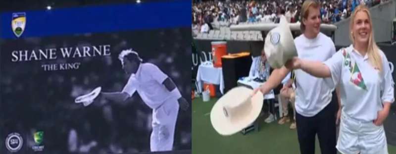 शेन वॉर्न के बेटे और बेटी ने ही बाउंड्री लाइन के पास खड़े होकर फ्लॉप हैट उतरी। मेलबर्न क्रिकेट ग्राउंड वॉर्न का होम ग्राउंड होने के साथ ही सबसे पसंदीदा मैदान भी था। इस मैदान पर 11 टेस्ट में उनके नाम 56 विकेट हैं। 1994 में बॉक्सिंग डे टेस्ट के दौरान वॉर्न ने इस मैदान पर हैट्रिक विकेट लिया था। 2006-07 एशेज सीरीज के दौरान शेन वॉर्न ने मेलबर्न क्रिकेट ग्राउंड पर ही एंड्रयू स्ट्रॉस को आउट कर उन्होंने अपना 700वां टेस्ट विकेट लिया था।