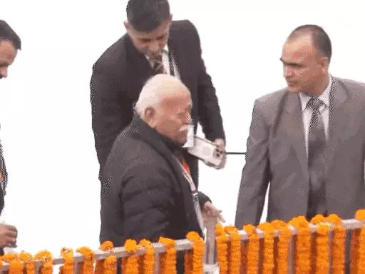 आरएसएस प्रमुख मोहन भागवत रामलला प्राण प्रतिष्ठा समारोह में पहुंचे।