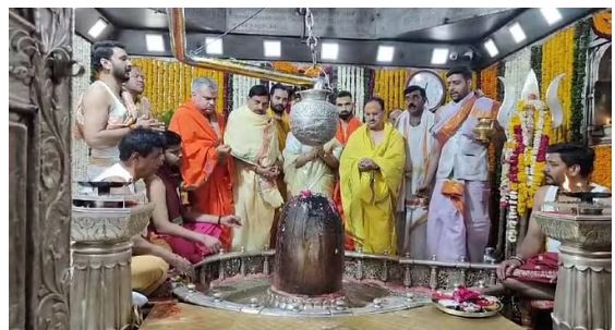 जिसके बाद में सीधे महाकालेश्वर मंदिर पहुंचे जहां उन्होंने गर्भग्रह से बाबा महाकाल का पूजन अर्चन और अभिषेक किया। मंदिर में पंडित राम गुरु, पंडित आकाश गुरु, पंडित अर्पित गुरु के द्वारा जेपी नड्डा और परिवारजनों के माध्यम से बाबा महाकाल का विशेष पूजन दर्शन करवाया गया। नड्डा बाबा महाकाल के दर्शन व उनका आशीर्वाद लेने के बाद उज्जैन से रवाना हो गए। इस दौरान उनके साथ प्रदेश के मुख्यमंत्री डॉ मोहन यादव और प्रदेश संगठन महामंत्री हितानंद शर्मा, मध्यप्रदेश लोकसभा प्रभारी डॉ महेंद्र सिंह भी मौजूद रहे।