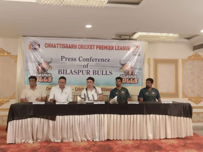 बिलासपुर। भारतीय क्रिकेट कंट्रोल बोर्ड की अनुमति से छत्तीसगढ़ स्टेट क्रिकेट संघ द्वारा आईपीएल की तर्ज पर छत्तीसगढ़ क्रिकेट प्रीमियर लीग का आयोजन शहीद वीरनारायण इंटरनेशनल स्टेडियम रायपुर में किया जा रहा है। इसमें छत्तीसगढ़ के सभी उदयीमान क्रिकेट खिलाडियों को 6 टीमों में विभक्त करके उनका आपस में मैच कराया जा रहा है। इसका उद्देश्य भविष्य में अच्छे क्रिकेटरों की पहचान करके उनको एक उज्जवल भविष्य का अवसर प्रदान करना है। मगरपारा रोड में स्थित होटल सिल्वर ओक में पत्रकारों को जानकारी देते हुए बुल बिलासपुर टीम के कप्तान शशांक सिंह,स्टेट क्रिकेट संघ के सेक्रेटरी,जिला क्रिकेट संघ के जिलाध्यक्ष नवीन जाजोदिया, सचिव विनटेश अग्रवाल,टीम के कोच बसंत मोहंती ने बताया कि छत्तीसगढ़ के उत्कृष्ठ चयनित खिलाडयि़ों को मिलाकर यह आयोजन किया जा रहा है।