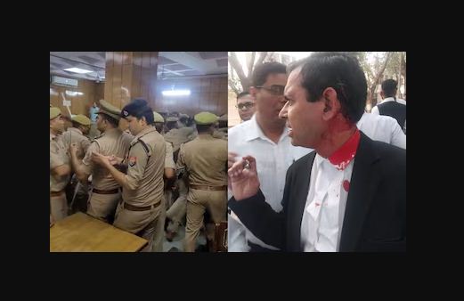 गाजियाबाद के जिला न्यायालय में वकील और पुलिसवालों के बीच झड़प