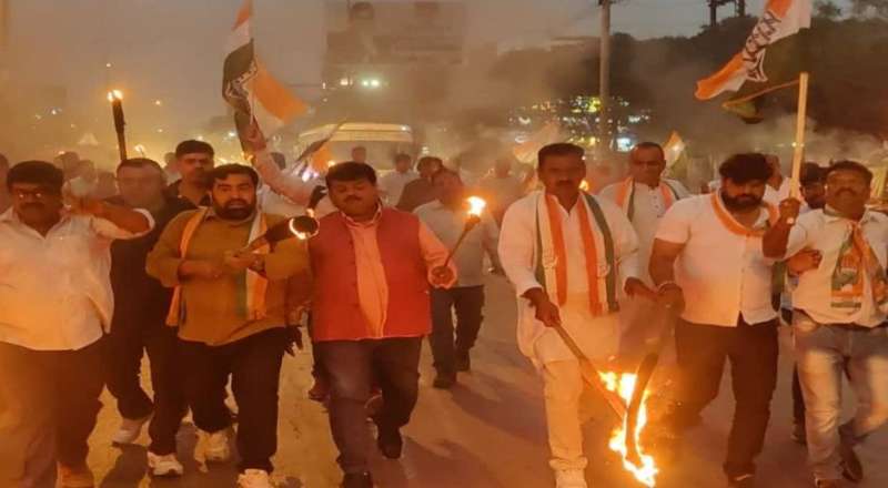 कांग्रेसियों ने जुलूस निकालकर किया सरकार के खिलाफ प्रदर्शन