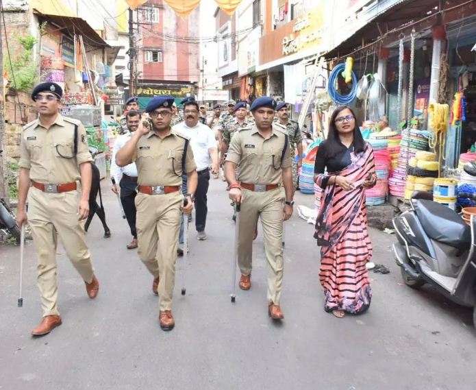 दुर्ग। लोकसभा निवार्चन मतदान तिथि 7 मई को दृष्टिगत रखते हुये जिले में शांतिपूर्वक मतदान सम्पन्न कराये जाने, लोगों को बिना किसी भय के मतदान करने हेतु जागरूक करने, आदतन अपराधियों, गुण्डे बदमाशों पर नकेल कसने के उद्देश्य से कलेक्टर ऋचा प्रकाश चौधरी, एसपी जितेन्द्र शुक्ला के मार्गदर्शन में दुर्ग, मोहन नगर, सुपेला, वैशाली नगर, छावनी, एवं खुर्सीपार थाना के महत्वपूर्ण स्थलों, रेल्वे स्टेशन पावर हाउस आदि क्षेत्रों में पुलिस, प्रशासनिक, पैरा मिलेदी फोर्स के अधिकारियों एवं जिला पुलिस बल, पैरा मिलेट्टी फोर्स के सैड़कों जवानों के साथ फ्लेग मार्च किया गया । दुर्ग में पुलिस लाईन दुर्ग से फ्लेग मार्च प्रारंभ किया गया जो पटेल चौक, सदर मार्केट, गवली पारा, चण्डी मंदिर, होटल मान, तकियापारा, शिवम, अग्रसेन चौक, ग्रीन चौक, राजेन्द्र पार्क चौक, मालवीय नगर चौक, उतई रोड (गांधी प्रतिमा), पुलिस लाईन में जाकर समाप्त हुयी। भिलाई में पुलिस कण्ट्रोल रूम से फ्लेग मार्च प्रारंभ होकर सुपेला चौक, लक्ष्मी मार्केट, गदा चौक, वैशाली नगर, रामनगर, मुक्तिधाम्, वृन्दानगर, 18 नम्बर रोड, मिलन चौक, अन्ना चौक, गांधी चौक, केम्प-2, प्रकाश बेकरी, अहमद नगर, जलेबी चौक, जवाहर मार्केट, नंदिनी रोड, गौतम नगर, शिवालय, पोस्ट आफिस, एमपीआर रोड, श्रीराम चौक, सुभाष मार्केट, असरफी मस्जिद, केनाल रोड, न्यू खुर्सीपार, लाल मैदान छावनी में फ्लेग मार्च किया गया। इस दौरान आमजनों से बिना किसी भय के मतदान किये जाने हेतु जागरूक किया गया एवं क्षेत्र के आदतन बदमाशों, गुण्डे बदमाशों की भी खबर ली गयी। इसी प्रकार रेल्वे स्टेशन, बस स्टेण्ड की बारीकी से चेकिंग की गयी, संदिग्ध लोगों से पूछताछ किया गया। होटल, लॉज संचालकों को संदिग्ध व्यक्तियों के निवास करने की सूचना तत्काल संबंधित थाना को दिये जाने हेतु हिदायत दिया गया।
