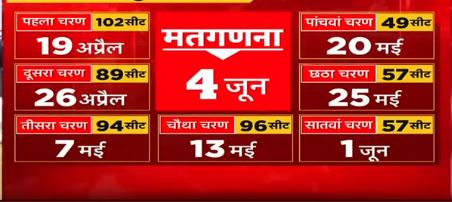 मुख्य चुनाव आयुक्त ने लोकसभा चुनाव की तारीखों का एलान कर दिया है। इसके मुताबिक, सात चरणों में लोकसभा चुनाव होंगे। चुनाव के नतीजे चार जून को आएंगे।