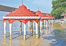 वाराणसी। लगातार बारिश के चलते गंगा नदी का जलस्तर दिन ब दिन बढ़ता ही जा रहा है और उसके उफान में तेजी आ रही है। शनिवार तक 80 सेमी पानी बढ़ गया था। महज तीन दिनों चार मीटर से ज्यादा बढ़ चुका पानी गंगा तट के सभी घाट व मंदिर पानी में डूब गए हैं। हरिश्चंद्र घाट की गलियों व मणिकर्णिका घाट की छत पर अंतिम संस्कार हो रहे हैं। आरती स्थल बदल दिया गया है।