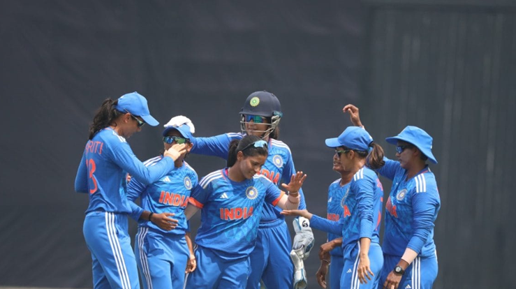 इससे पहले टॉस जीतकर पहले बल्लेबाजी करते हुए बांग्लादेश के लिए सलामी बल्लेबाज मुर्शिदा खातून ने सर्वाधिक 46 रन बनाए। राधा के तीन विकेट की मदद से भारत ने पहले बल्लेबाजी चुनने वाली मेजबान टीम को 119 रन पर समेट दिया। राधा ने 19 रन देकर तीन विकेट लिए जबकि दीप्ति शर्मा और श्रेयांका पाटिल को दो दो विकेट मिले।