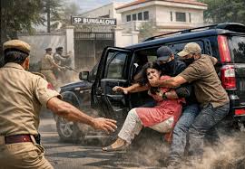 यह नजारा किसी फिल्मी सीन से कम नहीं था. मौके पर मौजूद लोग देखकर दंग रह गए. कुछ लोग तो इधर-उधर भागते नजर आए तो कुछ ने युवती को बचाने का प्रयास किया लेकिन इस दौरान गाड़ी नहीं रुकी. युवती को लेकर उसके मायके पक्ष के लोग फरार हो गए. मामला एसपी ऑफिस के पास का था और वीडियो भी सामने आ गया तो पुलिस ने गंभीरता दिखाते हुए नाकाबंदी कराकर गाड़ी समेत युवती को डिटेन कर लिया है. साथ ही इसमें शामिल आरोपियों को भी हिरासत में लिया है. पुलिस ने बीएनएस की विभिन्न धाराओं के तहत केस दर्ज कर आगे की कार्रवाई में जुट गई है।