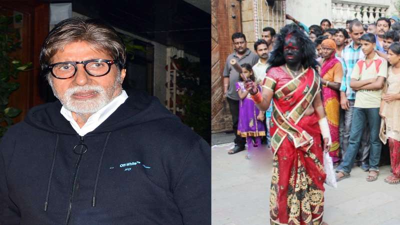 अमिताभ बच्चन के घर के बाहर भीड़ में चेहरे पर काला रंग पोते एक महिला नजर आई। इस महिला ने अपना पूरा चेहरा काले रंग से पोता हुआ है। मांग में सिंदूर, बड़ा सा टीका और आंखों के ऊपर लाल रंग से ही भरी हुई आईशेडो लगाए यह महिला अतरंगी अंदाज में बिग बी से मिलने आईं। इनके एक हाथ में प्लास्टर, तो दूसरे में आरी है। वहीं, चेहरे के हावभाव गुस्से से भरे हुए नजर आ रहे हैं, जैसे वह किसी बात की नाराजगी जाहिर करने आई हों।