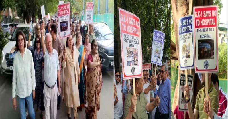नई दिल्ली: दक्षिणी दिल्ली के ग्रेटर कैलाश पार्ट-1 स्थित अर्चना परिसर में प्रस्तावित 400 बेड के निजी अस्पताल के निर्माण को लेकर स्थानीय लोगों ने विरोध प्रदर्शन किया. इस दौरान सैंकड़ों लोग सड़क पर उतरे और जमकर नारेबाजी की. प्रदर्शन में भाजपा विधायक शिखा राय आप नेता व पूर्व विधायक सौरभ भारद्वाज भी शामिल हुए.