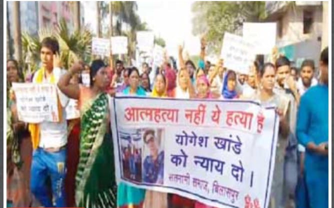 युवक की मौत पर सतनामी समाज का विरोध प्रदर्शन