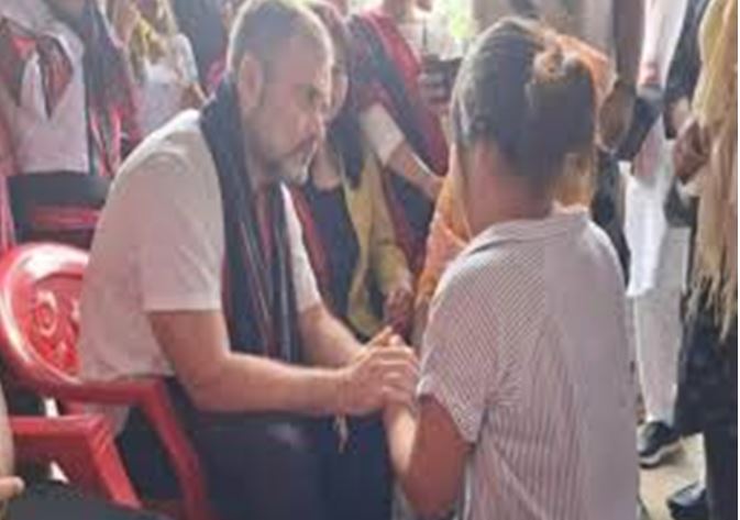 राहत शिविरों में रह रहे लोगों से राहुल गांधी ने की मुलाकात