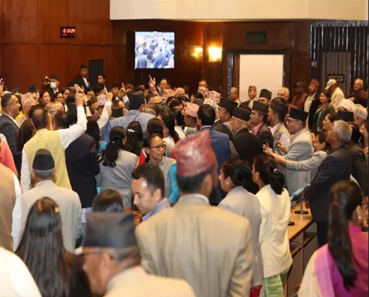 सदन के अध्यक्ष द्वारा गृह मंत्री लामिछाने को संबोधन के लिए मंच पर आमंत्रित करने की घोषणा के बाद विपक्षी सांसद सदन में हंगामा मचाने लगे। इस बीच पूर्व प्रधानमंत्री केपी शर्मा ओली और कांग्रेस उपाध्यक्ष धनराज गुरुंग के बीच तीखी बहस भी हुई। बाद में दोनों पक्षों के अन्य सांसद भी इस विवाद में शामिल हो गए। उनके विरोध के बीच अध्यक्ष द्वारा राष्ट्रपति कार्यालय से प्राप्त पत्रों को पढ़े जाने के बाद कांग्रेस विधायक काफी नाराज दिखे।इसके बाद अध्यक्ष ने गृह मंत्री को अपनी सीट पर बैठने को कहा और सदन की कार्यवाही स्थगित कर दी। अगली कार्यवाही शुक्रवार सुबह 11 बजे बुलाई गई है। मुख्य विपक्ष 10 मई को शुरू हुए सत्र के पहले दिन से ही संसद के बजट सत्र में बाधा डाल रहा है।