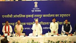 शाह ने नवा रायपुर के एक होटल से एनसीबी के कार्यालय का वर्चुअल उद्घाटन किया। अधिकारियों ने बताया कि इसके बाद केंद्रीय गृह मंत्री की अध्यक्षता में छत्तीसगढ़ में मादक पदार्थों के परिदृश्य पर एक समीक्षा बैठक हुई। शाह शुक्रवार से रायपुर के 3 दिवसीय दौरे पर हैं। शनिवार को उन्होंने वामपंथी उग्रवाद (एलडब्ल्यूई) की स्थिति और नक्सलवाद पर अंतरराज्यीय समन्वय पर बैठक की अध्यक्षता की थी।