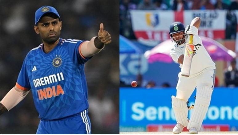 धर्मशाला में पांचवें टेस्ट के दूसरे दिन सरफराज ने अपने टेस्ट करियर का तीसरा अर्धशतक जड़ा। सरफराज खान ने 60 गेंद पर 56 रन की पारी खेली। मुंबई के इस बल्लेबाजी क्षमता से टी20 किंग सूर्यकुमार यादव बहुत प्रभावित हुए। सूर्या ने सरफराज की फोटो शेयर करते हुए उनकी तारीफ की।