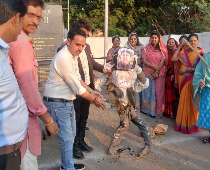 रामजीलाल के पुतले को पिलाया गोमूत्र