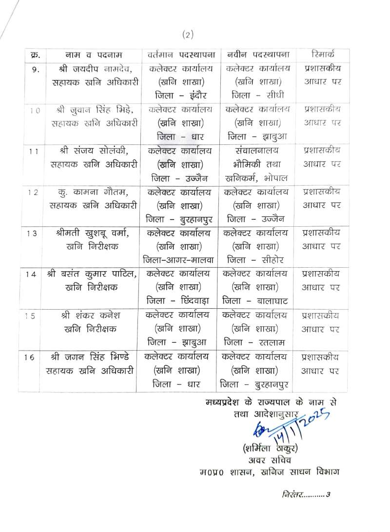 भोपाल: खनिज अधिकारियों के हुए तबादले