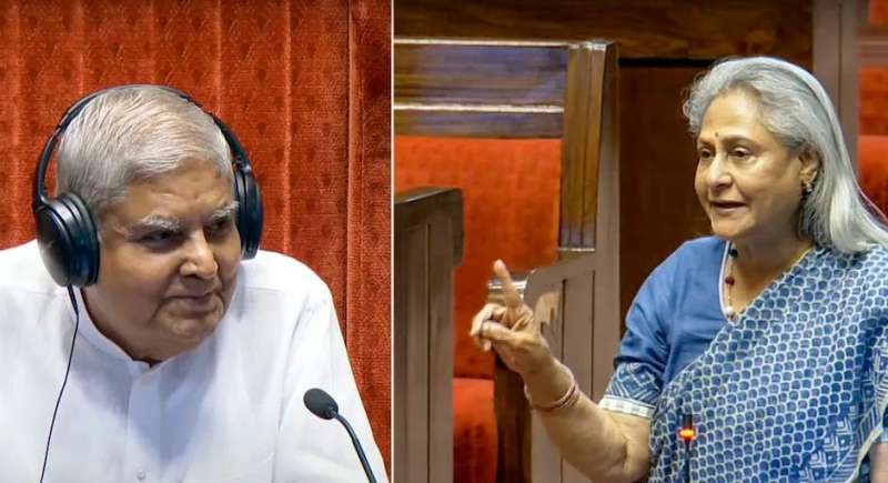 नई दिल्ली । राज्यसभा में सोमवार को सभापति जगदीप धनखड़ ने जैसे ही जया बच्चन का नाम लिया। सदन का माहौल ही बदल गया। सभापति धनखड़ और जया बच्चन के बीच की बातचीत काफी दिलचस्प थी। जैसे ही सभापति ने जया बच्चन का पूरा नाम लिया, वे सीट से उठीं और भड़की दिखीं। दरअसल सभापति ने श्रीमति जया अमिताभ बच्चन कहकर संबोधित किया था।