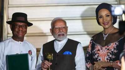 अबूझा । भारतीय प्रधानमंत्री नरेंद्र मोदी को नाइजीरिया के सर्वोच्च नागरिक सम्मान द ग्रैंड कमांडर ऑफ द ऑर्डर ऑफ नाइजर (जीसीओएन) से सम्मानित किया गया। इस प्रतिष्ठित सम्मान को पाने...