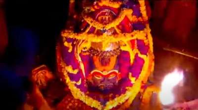 बाबा महाकाल ने हनुमान स्वरूप में भक्तों को दिए दर्शन, भस्म आरती में लगाए तिलक