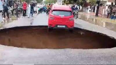 लखनऊ । यूपी की राजधानी लखनऊ के विकास नगर क्षेत्र में बीच सड़क पर एक बड़ा गड्ढा हो गया जिससे वहां से गुजर रही एक कार फंस गई थी। यह...