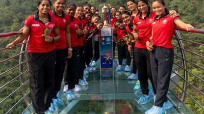 Women's Asian Hockey Champions Trophy 2024 के लिए टीम इंडिया राजगीर पहुंची, ग्लास ब्रिज पर तस्वीर खिंचवाकर ट्रॉफी जीतने का लिया संकल्प